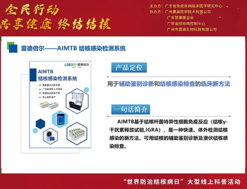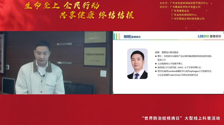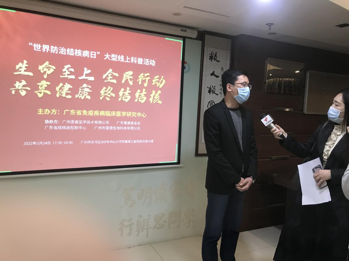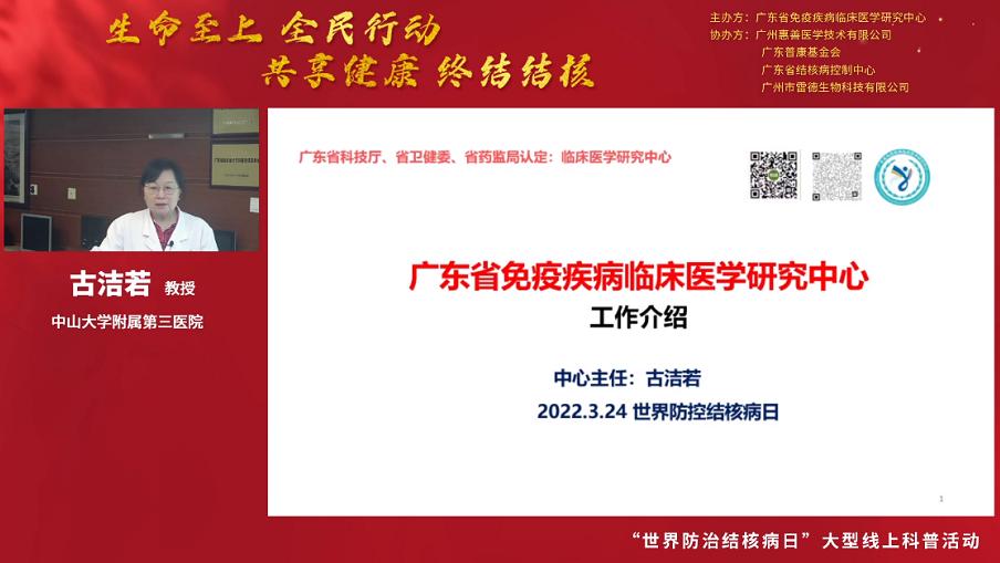 3月24日是第27個“世界防治結核病日”,今年的主題是“生命至上 全面行動 共享健康 終結結核”。為促進公眾對結核病感染危害及其檢測手段的了解,引導公眾做好疫情期間結核病的防控工作,2022年3月24日18:00-20:00,廣東省免疫疾病臨床醫學研究中心聯合廣東省結核病控制中心和廣州市雷德生物科技有限公司開展大型線上結核防控知識科普和結核篩查活動。