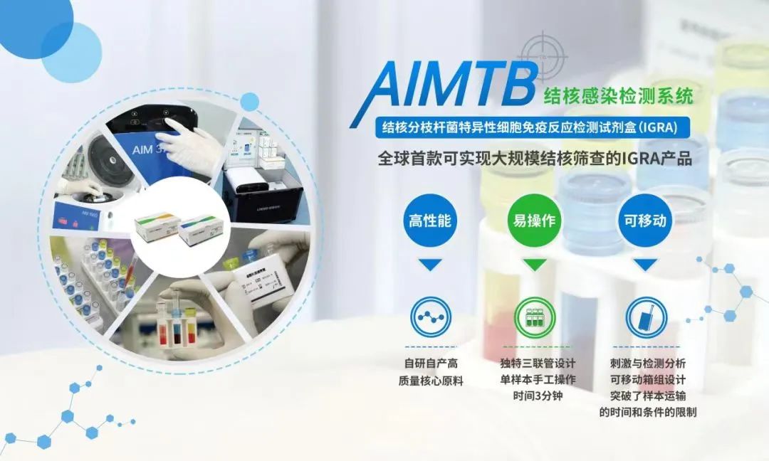 與國際主流同類產品相比,AIMTB靈敏度、特異性和穩定性更高,同時突破了因操作復雜導致的通量有限、價格昂貴難以普及兩大瓶頸,是國際首款可實現大規模結核感染篩查的IGRA產品。