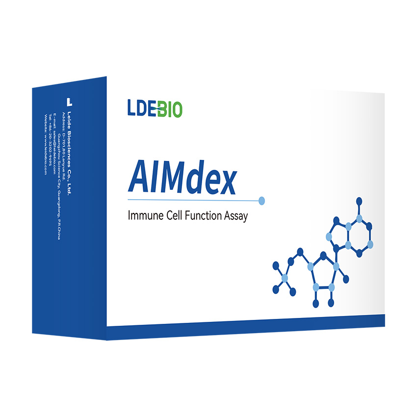 AIMdex is an immunological function assay kit. It reflects the activity of CD4 T cells by measuring the level of ATP release from CD4+T cells after stimulation.