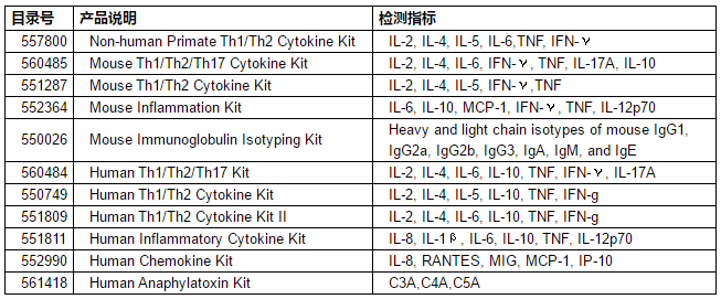 2、CBA Flex Set 細胞因子檢測指標