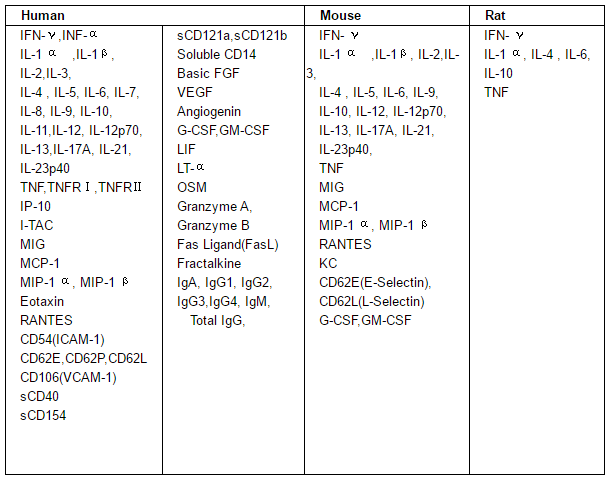 CBA應用:自CBA上市以來,越來越多的科研和臨床研究人員將CBA應用于他們的領域。CBA應用領域涉及眼淚、血清、唾液、細胞培養上清等樣本中細胞因子、炎癥因子的水平的分析。CBA還用于細胞信號傳導中磷酸酸化蛋白、凋亡相關蛋白分析,系統性紅斑狼瘡(SLE)和新生兒膿血癥等免疫疾病的研究,腫瘤研究,藥物對病人的治療效果評估,藥物研發,疫苗研究,總體免疫功能分析等多領域。